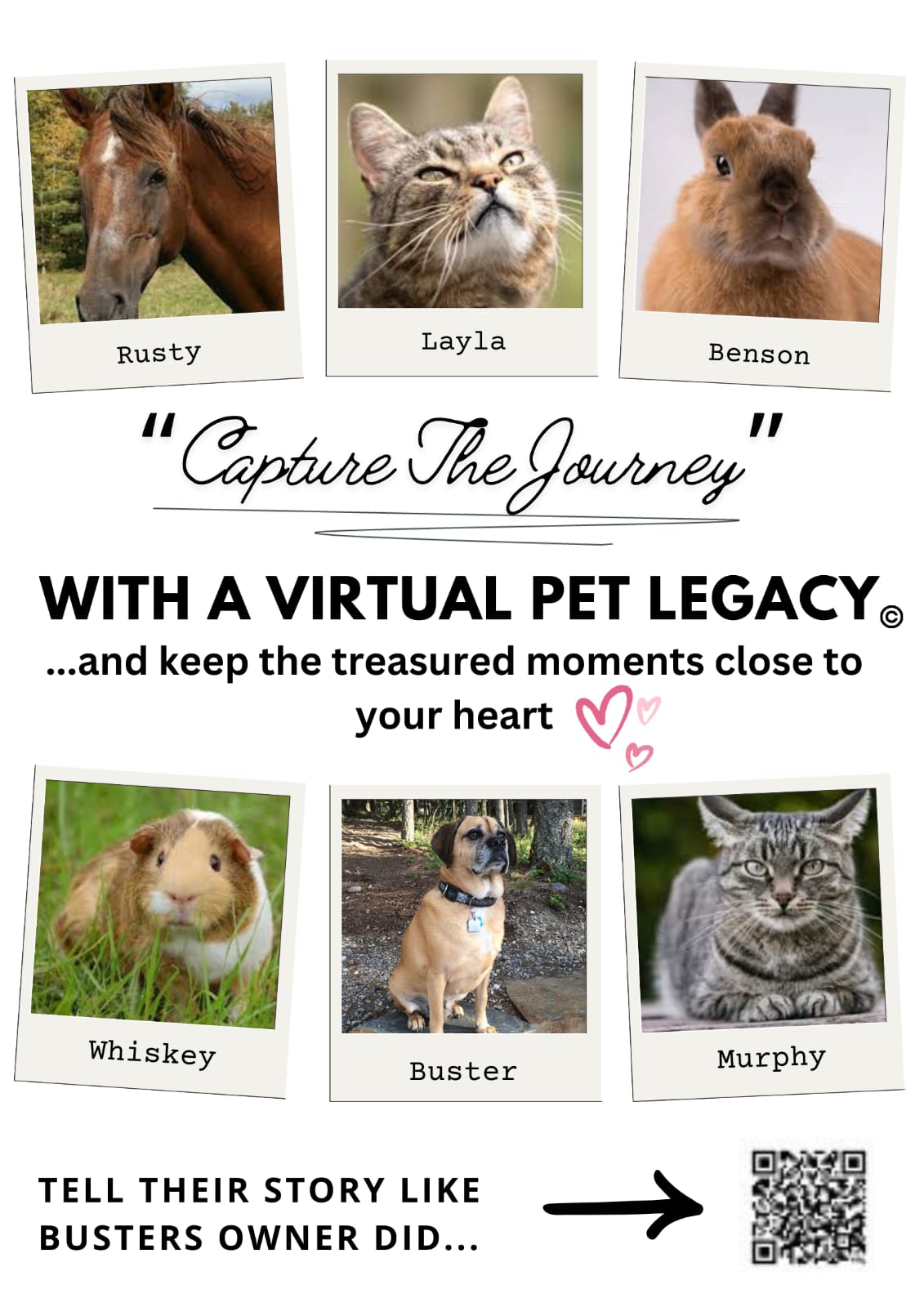 Keep the treasured moments close to your heart by celebrating your beloved Pet with a “Capture the Journey”, Virtual Pet Legacy.